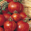 Prachtige, zeer vroege en productieve rode tomatenvariëteit uit Engeland. Rode vruchten met gele strepen, ongeveer zo groot als een grote abrikoos. Zeer smaakvol. Onbepaalde groei en vrij krachtig
